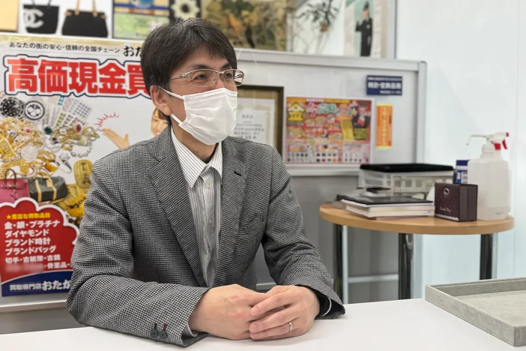 2020年7月、「おたからや」の1号店をオープンしました。当時は周辺地域に同業の店舗がなく、チャンスだと感じての船出でした。とはいえ、買取業は全くの未経験。研修で知識は得ましたが、実際の査定やお客様とのやり取りは手探り状態。特に、飲食店ではお客様から代金を「頂く」立場でしたが、買取ではお客様に代金を「お渡しする」という逆の立場になることに、最初は大きな戸惑いを感じました。オープン当初は、査定の経験不足から、品物の価値を十分に見極めきれなかったこともあったかもしれません。それでも、開店当初からお客様には恵まれ、多くの方にご来店いただけました。